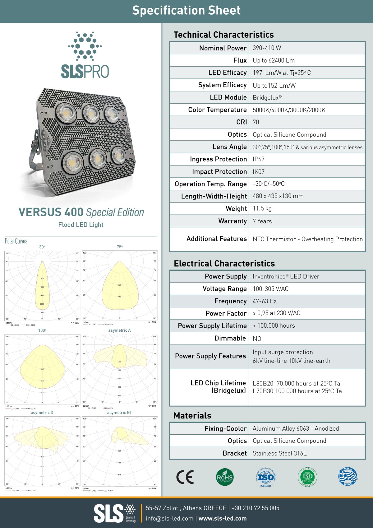 O Versus 400 Special Edition είναι προβολέας τεχνολογίας LED, που συνδυάζει την αντοχή, την υψηλή απόδοση και την αξιοπιστία.