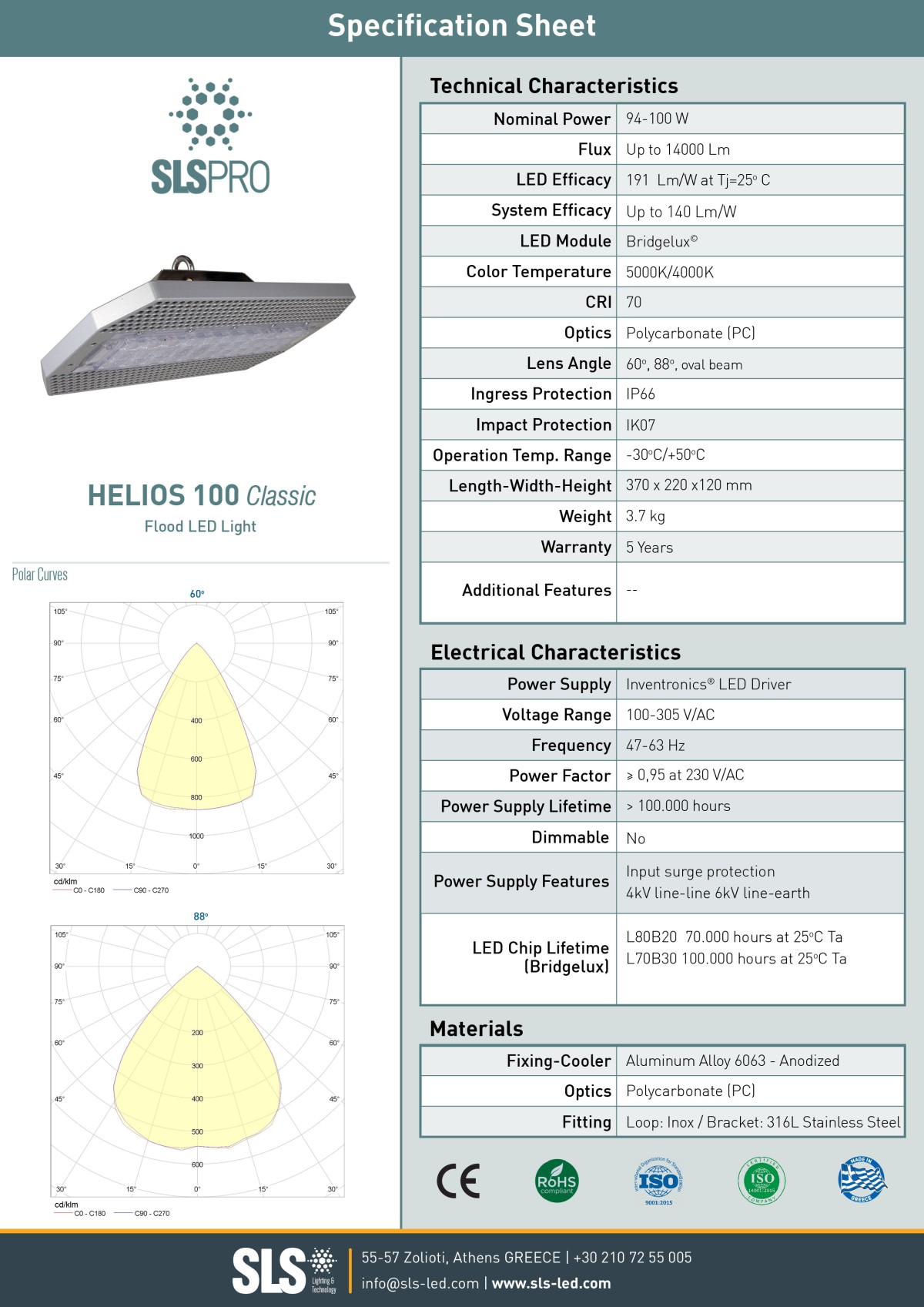O Helios 100s Classic είναι προβολέας τεχνολογίας LED, που συνδυάζει την αντοχή, την υψηλή απόδοση και την αξιοπιστία.