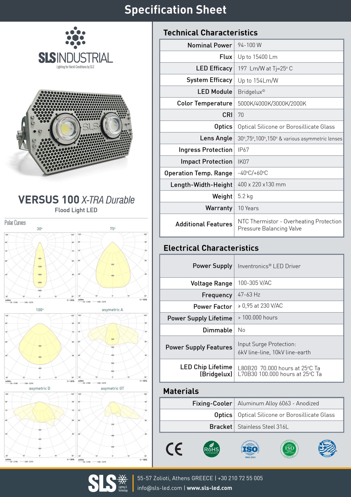 • Kατασκευασμένος από αλουμίνιο υψηλής θερμοαγωγιμότητας και ανοξείδωτο ατσάλι 316L.